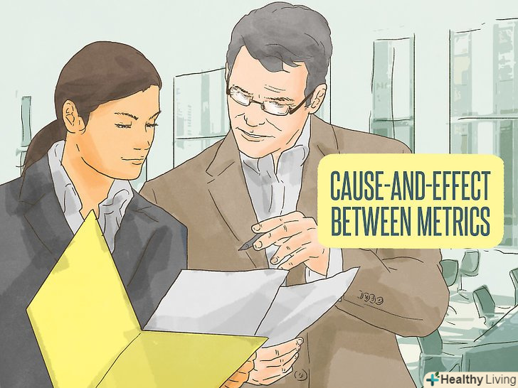На додаток до основного метричного показника виберіть супутні показники діяльності.оцінка супутніх показників дозволить зрозуміти, як зміни в робочих процесах допомагають компанії досягти одну з основних цілей її діяльності. Наприклад, якщо основним метричним показником виробництва була обрана швидкість випуску продукції, він може бути безпосередньо пов'язаний зі збільшенням прибутку компанії або скороченням постійних витрат. Між основним і супутніми метричними показниками обов'язково повинні бути присутніми причинно-наслідкові зв'язки. Саме вони дозволяють довести, чому бізнесу важливо займатися поліпшенням основних показників виробництва.[4]