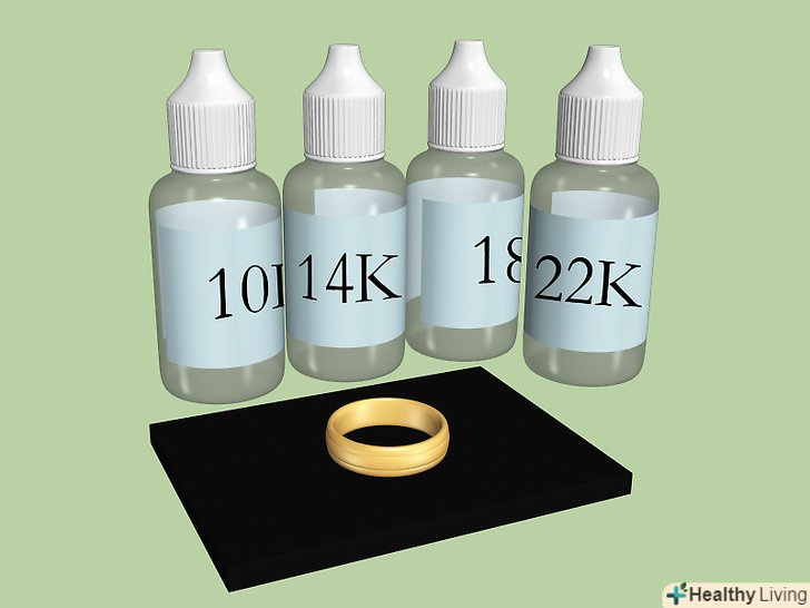 - Skey Тест купіть тестер на золото або спеціальну ручку для перевірки золота, що використовують метод Skey.ці тестери розраховані на 1000 тестів і коштують недорого. Такий тест є безпечною альтернативою кислоті і може точно встановити справжність таких металів, як біле золото.