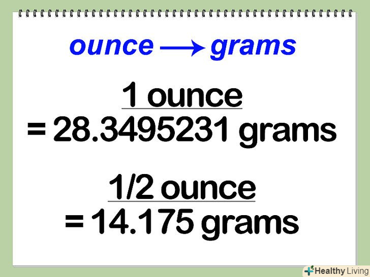 Переведіть Унції в грами, якщо ваші ваги показують значення в унціях. 1 унція = 28,3495231 грам.- Проводите всі ваші розрахунки в одній одиниці ваги, що значно полегшить процес.