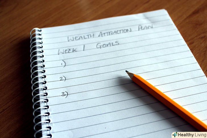 Зробіть графік для свого плану залучення багатства.- Напишіть, скільки ви хочете заробити за наступні 3 місяці, 6 місяців. Будьте конкретні. Фортганг наполягає на тому, що необхідно прописувати цілі у формі подяки. Наприклад, напишіть:"спасибі за $100 000 (3500000 руб), які я зароблю до кінця цього року". Якщо з плином часу ви розумієте, що мета навряд чи буде досягнута, все одно будьте вдячні і продовжуйте ставити собі позитивні цілі.