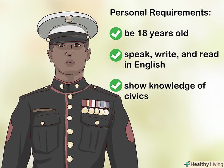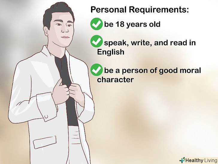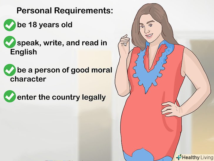 Задовольніть особистим вимогам.на додаток до статусу резидента вам буде необхідно продемонструвати свою придатність в частині деяких особистих якостей. Переконайтеся в тому, що ви відповідаєте нижчезазначеним вимогам.[17]- Вам повинно виповнитися 18 років.
