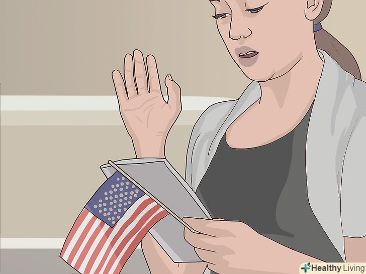 Принесіть присягу.перш ніж ви станете громадянином США, вам доведеться продемонструвати свою прихильність до цієї країни складанням присяги на вірність.[30]