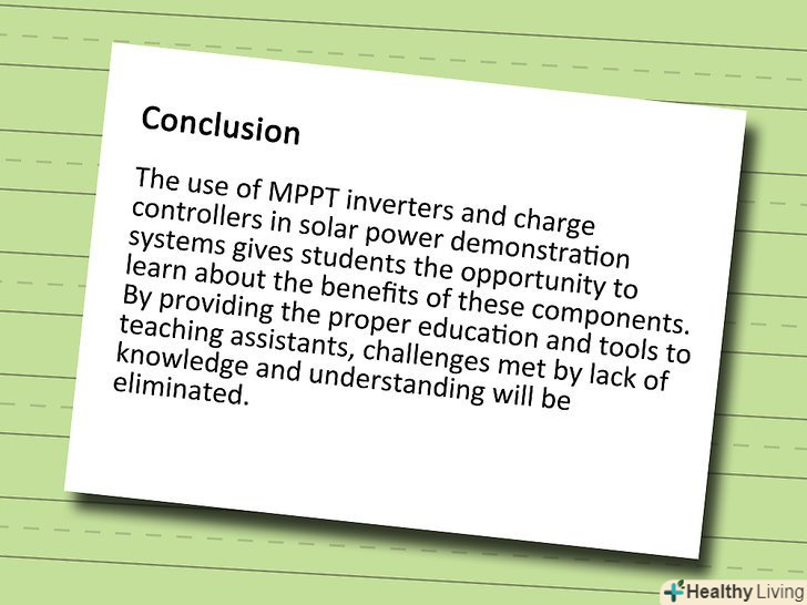 Завершіть документ загальним підсумком, який розгляне проблему, її рішення і результати, які ви сподіваєтеся досягти.