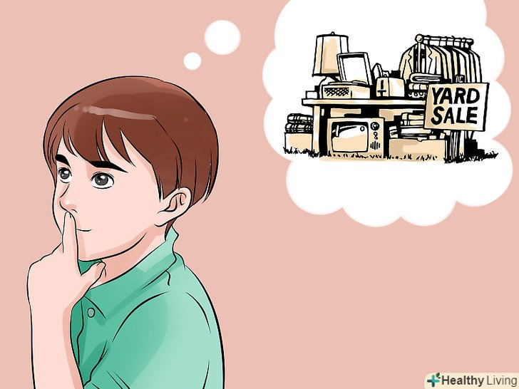 Продаж непотрібних речей.можна продавати свої речі на сайтах на кшталт Amazon або Ebay.[8] це можуть бути предмети, які вже не потрібні вам або вашим батькам (наприклад, прочитані книги). Ще одним способом заробити чималі гроші стане продаж старовинних речей на аукціонах. Такі предмети нерідко можна знайти на розпродажах особистих речей або в магазинах уживаних товарів. Якщо у батьків є вільний час у вихідний день, то вони могли б допомогти вам у пошуку старовинних речей.