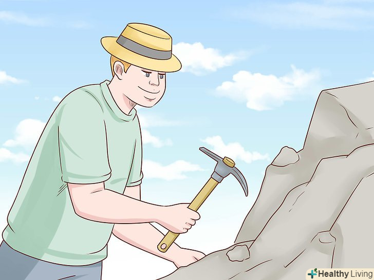Займіться пошуком цінних мінералів.можна почитати спеціальні посібники, в яких описується, де можуть бути цінні породи. Скам'янілості, жеоди і напівкоштовні камені нерідко зустрічаються в певних регіонах. Але пам'ятайте, що на те, щоб знайти щось корисне, може піти багато часу, якого у вас може і не бути.- Навчіться визначати цінність мінералів. Якщо ви шукаєте напівкоштовні камені, пам'ятайте, що колір і розмір можуть істотно впливати на їх вартість.[9]