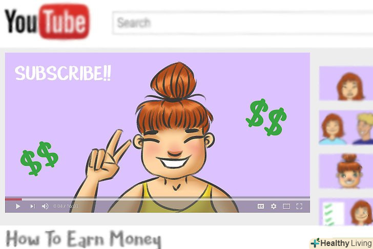 Створіть свій канал на YouTube.завантажуйте відеоролики на безкоштовний сервіс на кшталт YouTube і заробляйте гроші на рекламі, Якщо ваші матеріали стануть популярними. Вже існують мільйони користувачів, які конкурують один з одним, але не сумуйте і спробуйте свої сили! Багато сучасних зірок YouTube починали з бажання заробити трохи грошей в підлітковому віці і весело провести час. Важливо, щоб батьки були в курсі обраної тематики роликів і допомагали вам правильно реагувати на коментарі користувачів з метою вашої безпеки.[11]- Найчастіше дивляться влоги про моду і ролики про те, як власник каналу проходить різні ігри, але не варто обмежуватися найпопулярнішими жанрами. Якщо ви любите розігрувати рідних або створювати жартівливі скетчі, то сконцентруйте зусилля на таких роликах! Також можна створити на YouTube Книжковий клуб або групу для шанувальників творчості і обговорювати свої улюблені книги, музику або фільми.