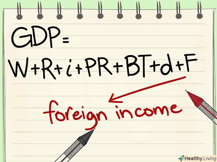 Додайте загальний дохід від зарубіжних посередників.для цього вам потрібно знайти, скільки отримали громадяни країни з-за кордону і відняти з цієї суми гроші, відправлені громадянами вашої країни за кордон.