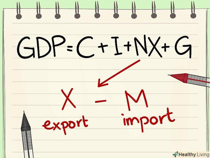 Додайте різницю між імпортом та експортом.точніше, з суми експорту треба відняти суму імпорту-все ж, вираховується внутрішній валовий продукт-а результат додати в рівняння.- Якщо імпорту більше експорту, то результат, ясна річ, буде негативним. Тоді його доведеться не додавати, а віднімати.