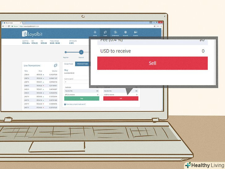 Продайте біткоіни на торговому майданчику.на деяких торгових майданчиках біткоіни можна продавати іншим особам. На одних сайтах біткоіни можна продати торговому майданчику, яка вже особисто перепродасть їх зацікавленим покупцям. Як би там не було, конкретний метод продажу бікоїнів буде залежати від торгової площадки, на якій ви зареєстровані. Як правило, досить натиснути на кнопку» продати біткоіни", щоб приступити до продажу своєї криптовалюта.[8]- Біткоіни будуть конвертовані в долари і переведені на вказаний Вами рахунок в банку.