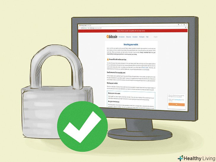 Переконайтеся в надійності обмінного пункту.визначити, чи є обмінний пункт біткоіни надійним чи ні, можна декількома способами. Для початку зайдіть на авторитетні сайти, щоб знайти відгуки про потрібний вам сервісі. Вам також варто перевірити, чи використовує обмінний пункт на своєму сайті розширення протоколу https (а не менш надійний http) у своїй URL-адресі. І нарешті, користуйтеся лише тим обмінним пунктом, на якому діє двофакторна аутентифікація, щоб крім вас ніхто більше не міг підтвердити обмін біткоіни.[3]