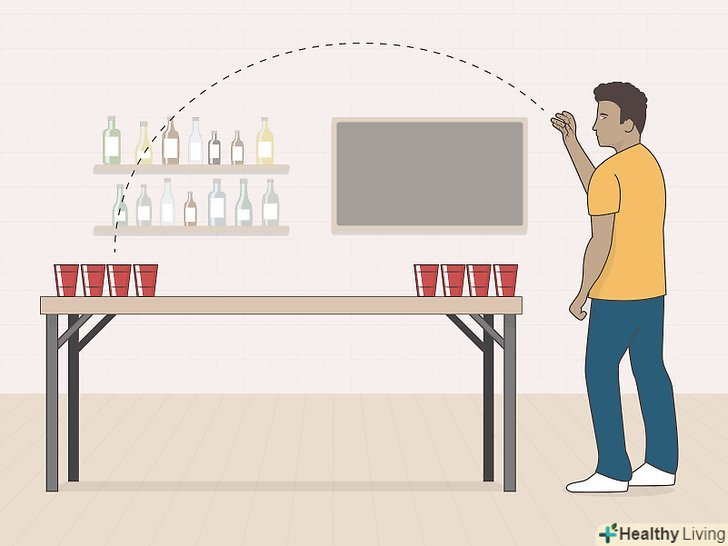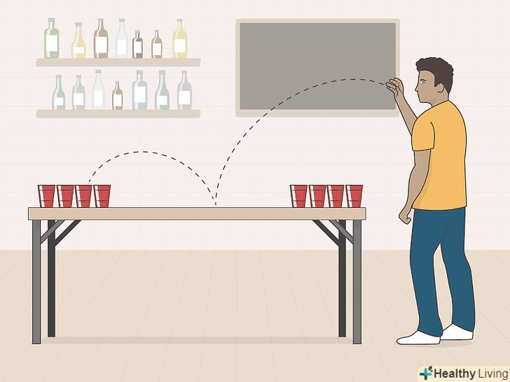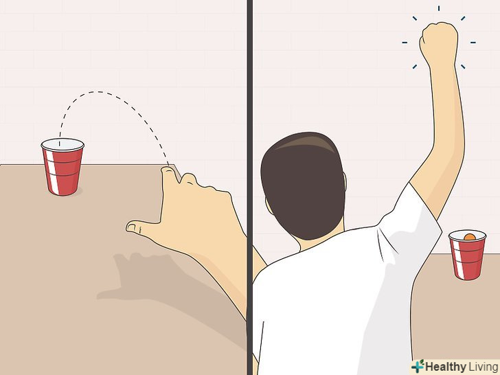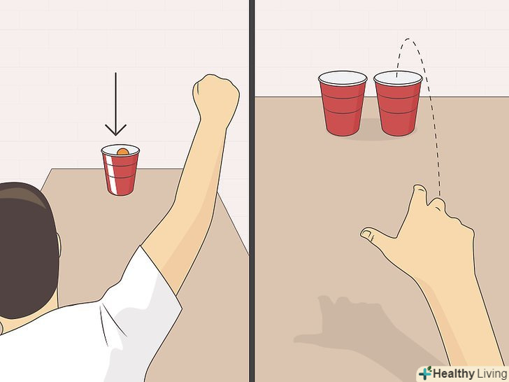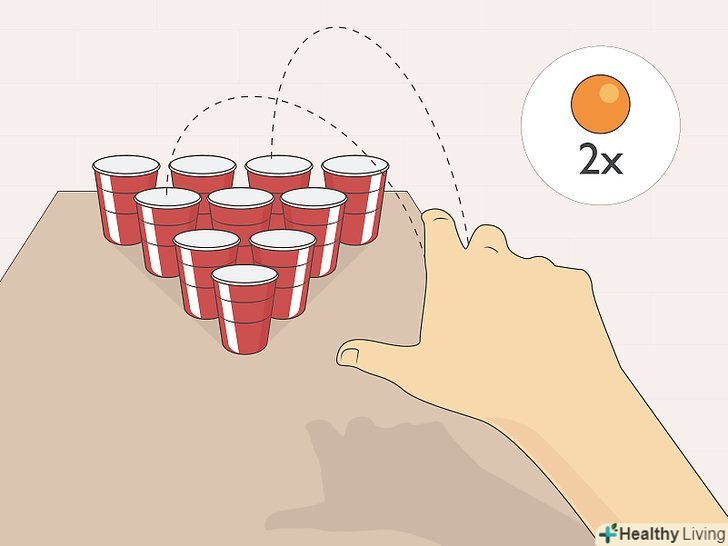 По черзі кидайте кульки в стаканчики.кожна команда може кинути 1 м'яч за раз. Ваша мета-закинути м'яч в стаканчик протилежної команди. Ви можете кидати м'яч як прямо в стаканчик, так і з відскоком від столу.[3]- Спробуйте кидати м'яч по дузі. Так буде більше ймовірності, що кулька потрапить в стаканчик.[1]