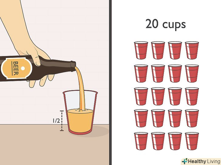 Наповніть 20 500-грамових пластикових стаканчиків, наполовину заповнених пивом.[1] якщо ви не хочете пити занадто багато, ви можете наповнити пивом ¼ склянки. Ви можете змінювати кількість пива в кожній склянці, однак кількість пива в склянках на кожній стороні столу повинна бути однаковою.