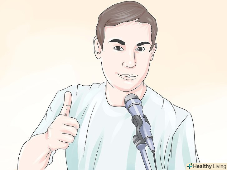 Поборіть свій страх перед сценою.влаштовуйте невеликі номери не на сцені якомога частіше, щоб звикнути до виступу на публіці. Навчіть однокласників чогось, що Ви знаєте. Влаштуйтеся волонтером в музей, що дасть вам слухняну аудиторію, щоб попрактикуватися. Працюйте, щоб вийти на сцену під прожекторами і перед публікою, яка чекає вашого виступу, а також того, що ви їх розсмішите. Відвідуйте "відкриті мікрофони", де публіка не буде чекати від вас занадто багато чого, спробуйте себе там. Це допоможе вам подолати страх сцени. Цей страх можна подолати, піднімаючись на сцену все частіше і частіше. Так, це може бути страшно, але це також може стати вашим найцікавішим досвідом. Поборіть свій страх перед сценою.влаштовуйте невеликі номери не на сцені якомога частіше, щоб звикнути до виступу на публіці. Навчіть однокласників чогось, що Ви знаєте. Влаштуйтеся волонтером в музей, що дасть вам слухняну аудиторію, щоб попрактикуватися. Працюйте, щоб вийти на сцену під прожекторами і перед публікою, яка чекає вашого виступу, а також того, що ви їх розсмішите. Відвідуйте "відкриті мікрофони", де публіка не буде чекати від вас занадто багато чого, спробуйте себе там. Це допоможе вам подолати страх сцени. Цей страх можна подолати, піднімаючись на сцену все частіше і частіше. Так, це може бути страшно, але це також може стати вашим найцікавішим досвідом.