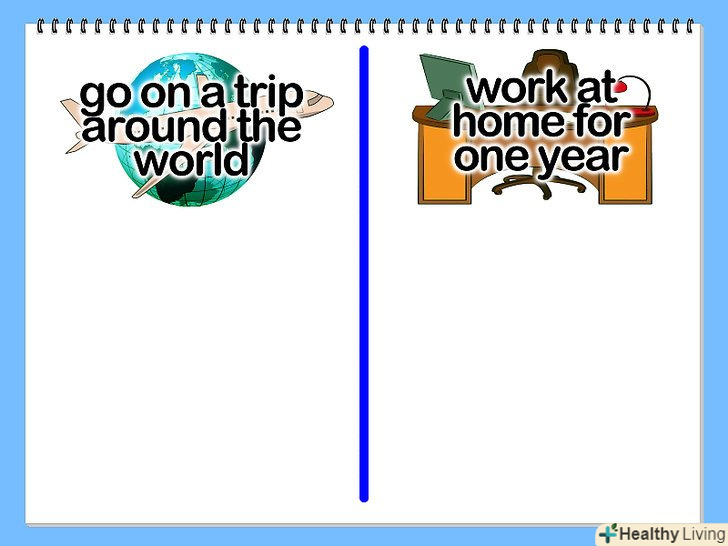 Розгляньте 2 варіанти для даного періоду часу.для наочності напишіть їх на папері в різних колонках.- Наприклад, можливість кругосвітньої подорожі або можливість попрацювати вдома.