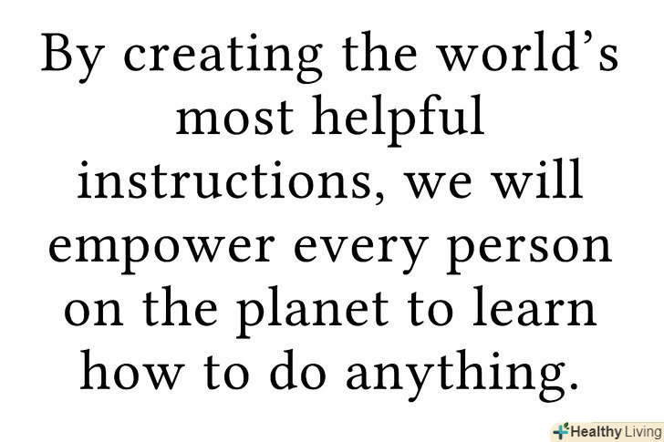 Місія організації визначає її душу і серце в двох пам'ятних і захоплюючих параграфах. Місія вашої компанії-Це ваш шанс створити правдиву картину, що демонструє вашу компанію решті світу. Для початку, почніть з мозкового штурму, що саме ви хочете включити в місію організації. Напишіть місію організації, а потім попросіть інших допомогти вам у її вдосконаленні. Ознайомтеся нижче, Як правильно написати місію організації.