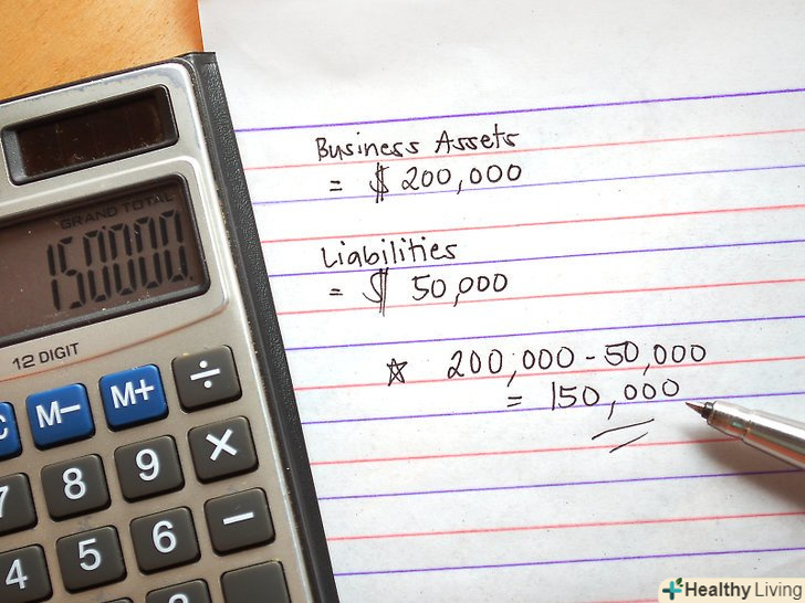 Відніміть сумарні зобов'язання з сумарних активів.Результатом буде акціонерний капітал. Він може бути негативним, якщо зобов'язання компанії перевищують її активи.