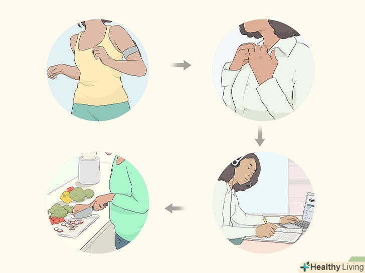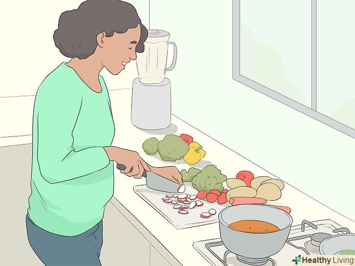 Знаходьте час на правильне харчування.через роботу можна забути про їжу і питво, проте правильне харчування здатне позитивно вплинути на стан здоров'я і зробити людину більш енергійним. Перед роботою з'їдайте корисний сніданок. Не забувайте робити перерву на обід кожен день.[19]- Тримайте в холодильнику і в шафках на кухні запас корисної їжі для повноцінних прийомів їжі і перекусів. Завдяки цьому вам не доведеться кожен раз вишукувати щось корисне.
