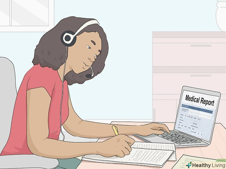 Подумайте, як ви можете використовувати свої навички для роботи вдома.багато хто при згадці віддаленої роботи відразу представляють тільки копірайтерів або веб-дизайнерів. Однак вдома можна виконувати саму різну роботу. Вивчіть різні варіанти, відштовхуючись від своїх знань, навичок і досвіду. Наприклад:[22]- Якщо робота передбачає набір і редагування великої кількості тексту, цю роботу можна виконувати вдома. Можна стати складачем тексту (транскрибатором) в медичній або юридичній сфері. Посади, пов'язані зі складанням графіка (наприклад, особистий асистент або співробітник ресепшена), також можуть бути віддаленими (працювати можна в інтернеті або по телефону). Існує також така посада, як віртуальний асистент.[23]