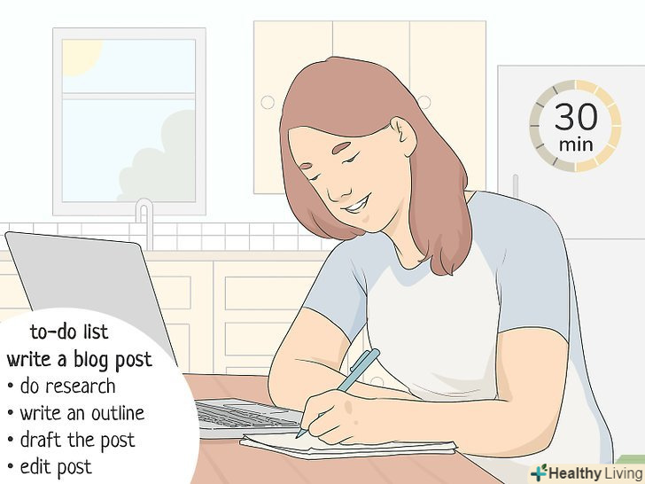 Порада: якщо людина працює вдома, він неминуче буде відволікатися, особливо якщо у нього є сім'я. Постарайтеся зробити перерви частиною робочого розпорядку: наприклад, виділяйте 20 хвилин на перерву, коли ваша дитина повертається зі школи, щоб ви могли поговорити з ним і приготувати йому їжу.[5]