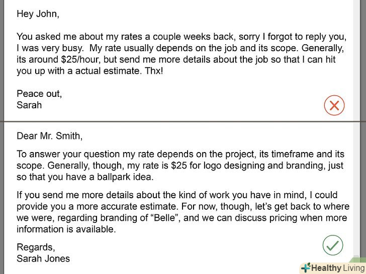 Спілкуйтеся з колегами і клієнтами в діловому Тоні.навіть при віддаленому форматі роботи важливо зберігати професійне ставлення до робочого спілкування. Розмовляйте з керівництвом, колегами та клієнтами так, як ви робили б це в офісі. Будьте ввічливі, ввічливі і приємні в спілкуванні. Не допускайте граматичних, пунктуаційних та інших помилок у листах та інших повідомленнях, які ви надсилаєте.[12]- Відповідайте на дзвінки, повідомлення в месенджерах і на листи швидко. Завдяки цьому ваше керівництво, колеги і клієнти будуть бачити, що ви ставитеся до роботи і до їх потреб серйозно.