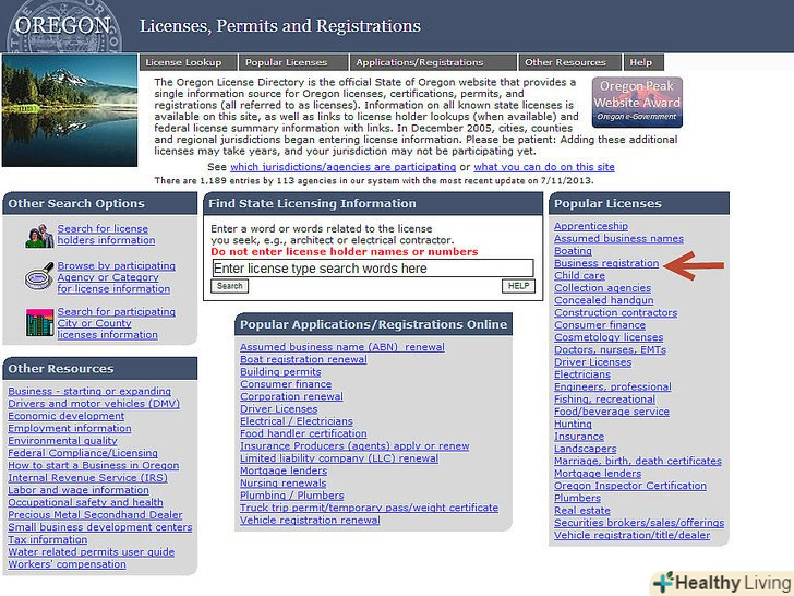 - Завдяки програмі Permit Me, знайдіть агентство у своєму штаті. Наприклад, для створення суб'єкта господарювання в Орегоні, виберіть штат Орегон, у списку"permit Tool".