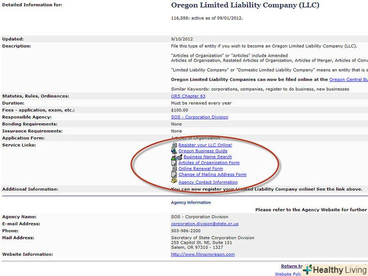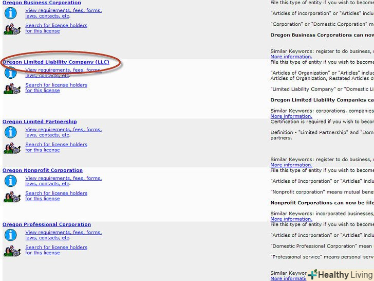Знайдіть правильну форму. вам буде надано великий список різних типів бізнес організацій у вашому штаті. Виберіть той, який найбільше підходить вашим потребам. Наприклад, ми виберемо ТОВАРИСТВО З ОБМЕЖЕНОЮ ВІДПОВІДАЛЬНІСТЮ (ТОВ).- Знайдіть посилання до необхідного бланку.