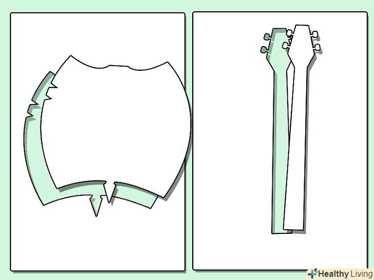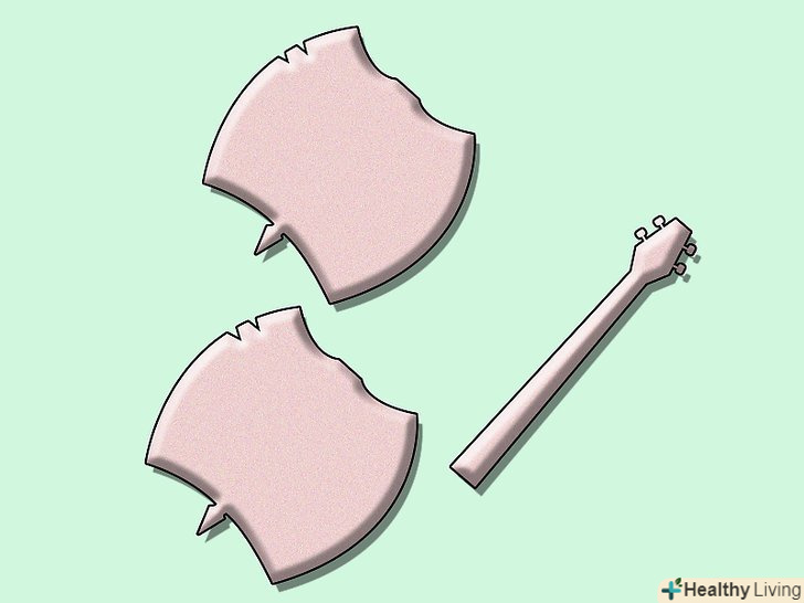Перенесіть шаблони на піноізоляцію.зробіть два корпуси і один гриф. Канцелярським ножем виріжте всі три деталі. Відшліфуйте краї наждачним папером. Перенесіть шаблони на піноізоляцію.зробіть два корпуси і один гриф. Канцелярським ножем виріжте всі три деталі. Відшліфуйте краї наждачним папером.