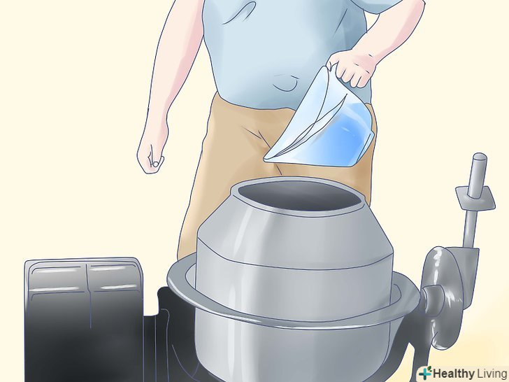 Подайте деревний матеріал в бетономішалку.висипаючи матеріал в бетономішалку, Ви забезпечите однорідність матеріалу, розмірів, щільності і рівномірний рівень вологи. Переконайтеся, що барабан або змішувач обертаються.