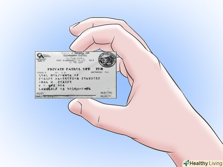 - Дізнайтеся які курси приймаються вашим регіоном. Програми тренування охоронців можуть проводитися і в якості державних програм і в приватних школах. Зазвичай вам потрібно буде принести довідку про несудимість і проявити себе так, щоб вас прийняли на курси операторів приватного патруля.