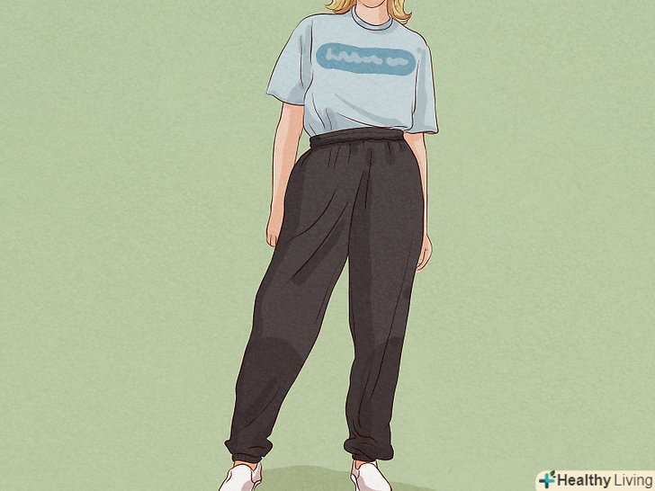 Порада: якщо у вас є спортивний светр (світшот) великого розміру, який оголює шию і відкриває одне плече, вони підійдуть для вашого образу. Одягніть під нього майку або спортивний бюстгальтер, бажано яскравого кольору.