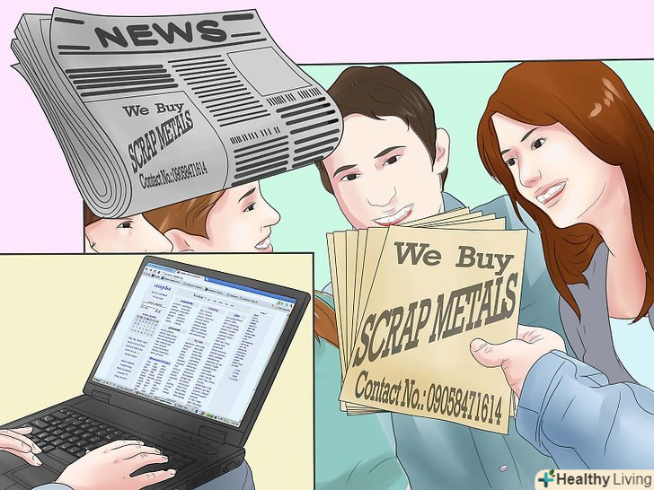 Дайте оголошення в місцевій газеті, на дошках оголошень в Інтернеті, а також роздайте флаєри.Дайте своїм сусідам знати, що ви відкрили бізнес з переробки металу, і попросіть їх відправляти вам весь металобрухт.