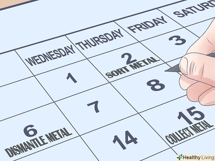 Розробіть графік.відведіть час на сортування і розбір металу, а також на його збір і доставку в центр утилізації або покупцеві.