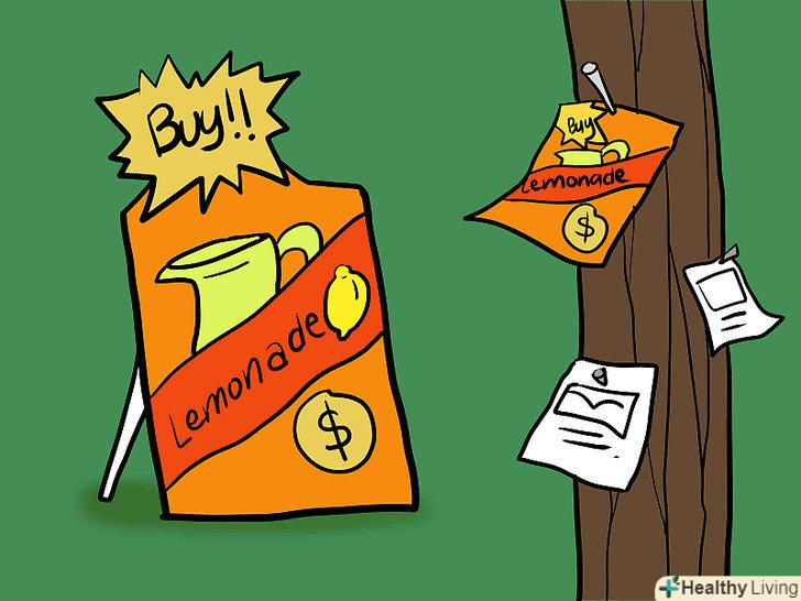 Продумайте схему реклами.навіть простий флаєр, розміщений на прилавках супермаркету, може забезпечити вам невеликий приплив покупців. Розмістіть вивіски навколо своєї території. Переконайтеся, що вивіски на вашому стенді показують, що Ви продаєте, і скільки це коштує. Помічали вивіски фаст-фуду? Доведено, що червоний і жовтий колір дають вам відчуття голоду, навіть якщо ви цього не розумієте. Червоний також може залучити клієнтів яскравим кольором. Не забудьте писати акуратно і просто.