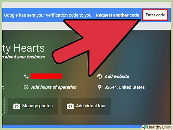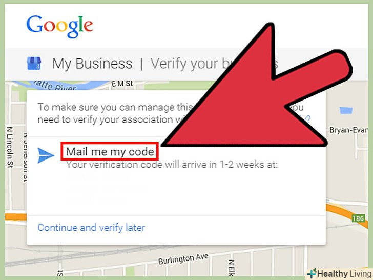 Натисніть на "зателефонувати мені зараз" або»підтвердити поштою".Google надішле Вам код, який підтверджує, що ви дійсно маєте право керувати компанією. Google повідомить вам шестизначний код по телефону або поштою. Існують також інші способи перевірки, наприклад, якщо ви є зареєстрованим власником сайту в консолі пошуку або якщо у вас є електронна адреса з тим же доменом, що і у компанії.- Підтвердити своє причастя до компанії по телефону найпростіше. Коли Google зателефонує, запишіть код підтвердження, який вам повідомлять.