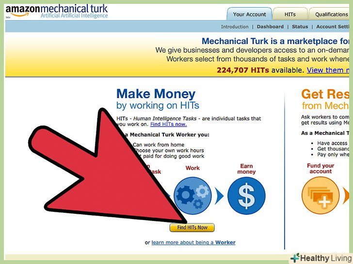 Працюйте на Яндекс.Толока. Толока дає можливість заробляти в Інтернеті, виконуючи прості завдання, з якими не справляються комп'ютери. В основному потрібно аналізувати і оцінювати різний контент. Наприклад, потрібно перевіряти відповідність сайтів пошуковим запитам, порівнювати картинки і визначати категорії товарів. Процес гранично простий-вибираєте завдання, виконуєте Його і отримуєте винагороду. Для роботи потрібен комп'ютер або мобільний пристрій з доступом в Інтернет і трохи вільного часу.- Amazon Mechanical Turk — західний аналог платформи краудсорсингу. Однак, щоб розмістити завдання на MTurk, необхідна реєстрація за поштовою адресою для виставлення рахунку в США. Таким чином, громадяни РФ не мають можливості використовувати MTurk.[4]