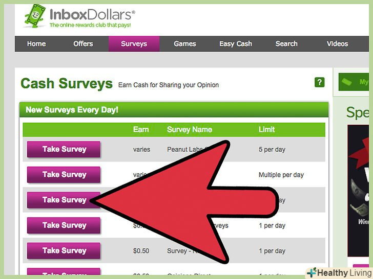Заповнюйте онлайн-опитування.якщо ви хочете проходити онлайн-опитування і дослідження, то у вашому розпорядженні буде багато варіантів. Зазвичай за проходження одного опитування платять небагато, але якщо ви будете проходити багато опитувань, ви зможете заробити непогану суму. Однак, врахуйте, що деякі подібні Сайти платять подарунковими сертифікатами або іншими негрошовими винагородами.[2]