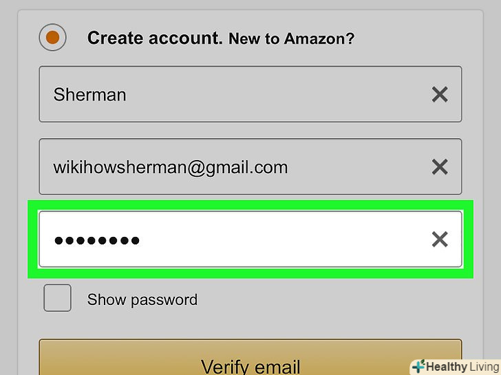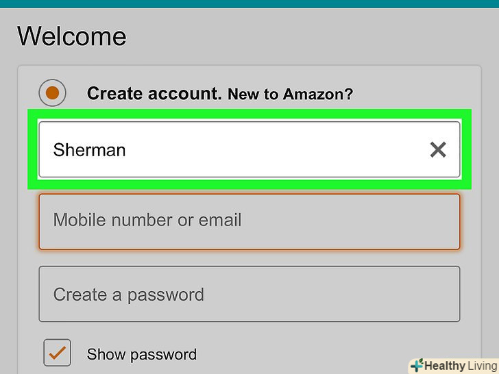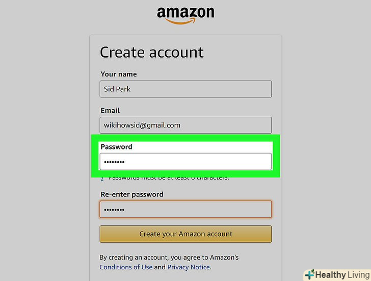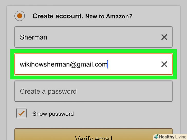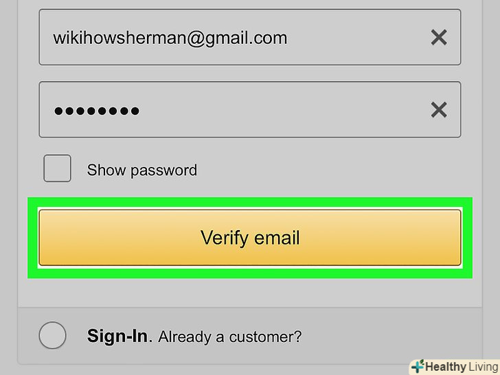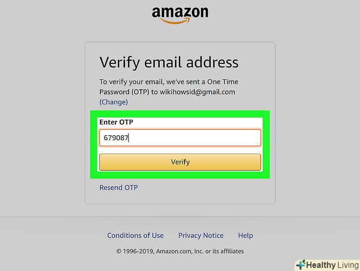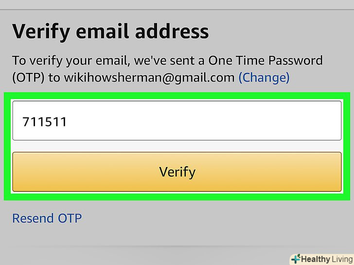 Клацніть поCreate Your Amazon Account (Створити обліковий запис Amazon).ця жовта кнопка знаходиться внизу сторінки. На вказану Вами адресу електронної пошти буде надіслано електронний лист з одноразовим паролем (OTP).