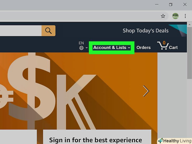 Перейдіть на сторінкуHttps://www.amazon.com у веб-браузері.це може бути будь-який веб-браузер на комп'ютері з Windows або macOS. Відкриється домашня сторінка Amazon.