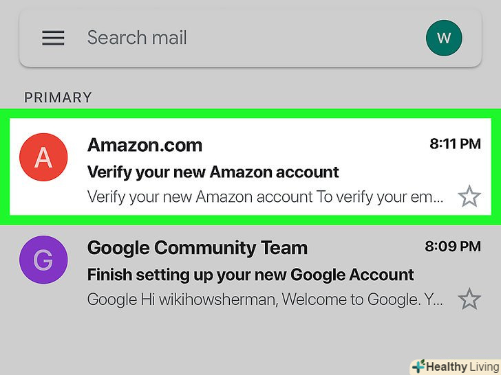 Відкрийте електронний лист від Amazon. ви отримаєте лист з темою " Verify your new Amazon account "(підтвердіть свій новий обліковий запис Amazon) від Amazon.com. відкрийте цей лист.- Якщо ви не отримали листа від Amazon, поверніться в додаток Amazon, перевірте введену адресу електронної пошти і натисніть "Resend OTP" (Повторно відправити OTP).