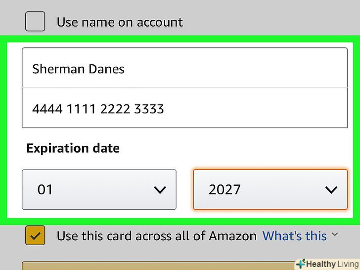 - Введіть ім'я, вказане на банківській картці, а потім введіть її номер.
