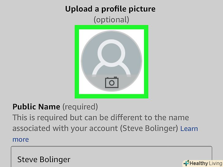 Налаштуйте свій профіль.для цього виконайте дії, описані нижче. Якщо ви дбаєте про свою конфіденційність, обмежте інформацію, яка буде відображатися у вашому профілі. Наприклад, можна вказати тільки своє ім'я і місце розташування.- Перейдіть на сторінкуhttps://www.amazon.com або запустіть програму Amazon Shopping, а потім увійдіть до свого облікового запису.