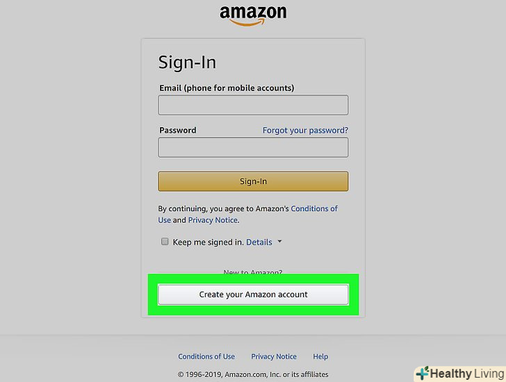 НатиснітьCreate Your Amazon Account (Створити обліковий запис Amazon).ця сіра кнопка знаходиться внизу сторінки авторизації.