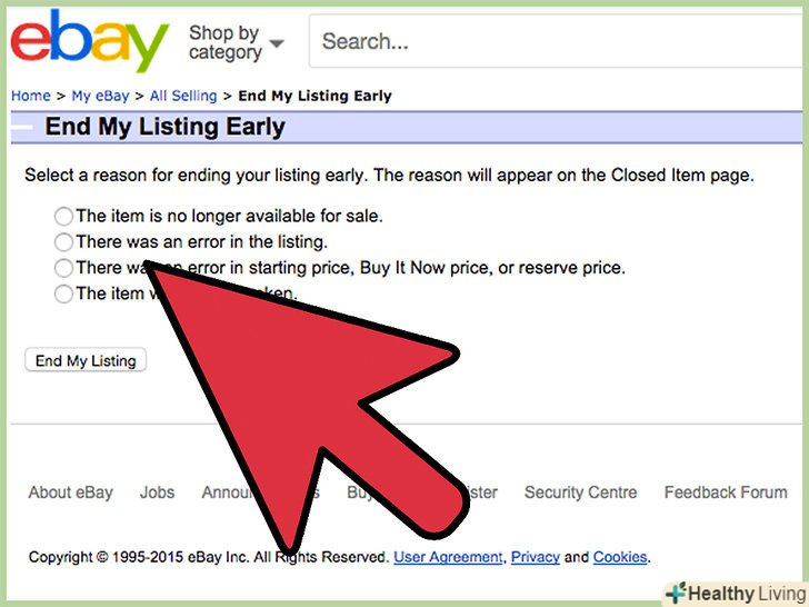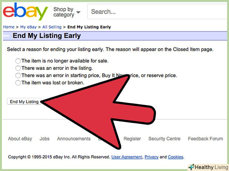 Виберіть "End Item" зі спадного меню. ви перейдете на сторінку "End My Listing Early".