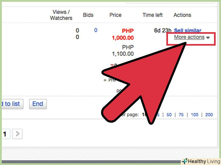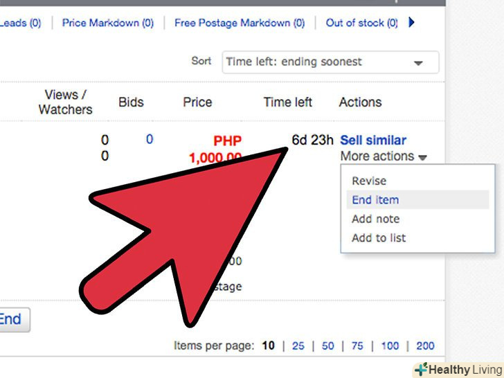 Перейдіть на сторінку "All Selling". у лівій частині екрана натисніть на напис "Sell", потім натисніть на" All Selling " щоб переглянути всі оголошення.[4]- Ви також можете натиснути на " Active "під написом" Sell " щоб перейти до активних оголошень. Так чи інакше, ви зможете знайти потрібне оголошення.