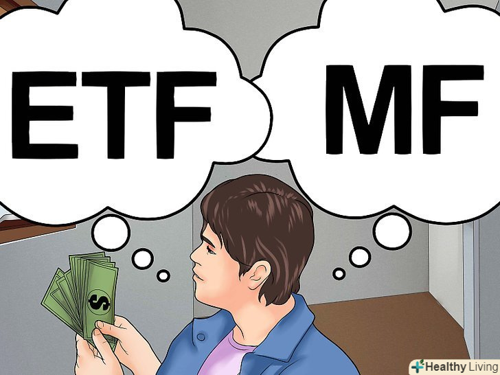 Вивчіть різні біржові інвестиційні фонди (ETF).біржові фонди подібні до ПІФів, але ними не керують. Цінні папери в складі біржового фонду зазвичай відображають рух різних індексів, наприклад S amp;P 500. Акції в складі ETF-фонду купуються точно так же, як і звичайні акції, що торгуються на біржі. Такі фонди, на відміну від взаємних фондів, мають мінімальну комісію або не мають її зовсім, і при цьому вони вважаються високоліквідними. Завдяки цьому ETF-фонди є хорошим варіантом для приватних інвесторів.[12]
