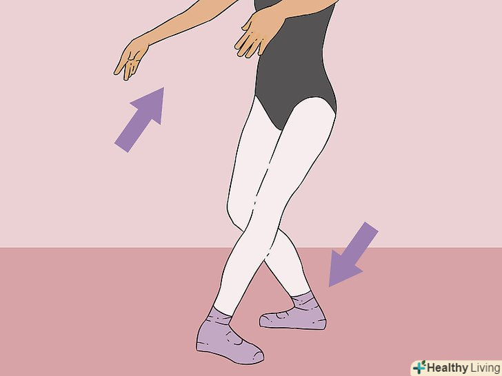 - Практикуйте баланс і поштовх, не обертаючись, виконуючи одні тільки кроки 5 і 7. Фокусуйтеся на зміцненні вашої ноги обертання і правильному положенні поштовхової ноги. Практикуйте належну позицію рук, не обертаючись, таким чином, ви отримаєте потрібне відчуття. Ви падаєте вперед? Якщо так, притисніть руки ближче до грудей і сфокусуйтеся на Русі прямо вгору, а не прямо вперед. Зберігайте тулуб, стегна і ногу обертання на одній лінії один з одним.