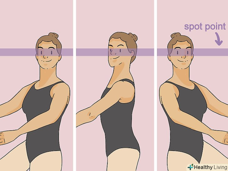 - Якщо ваша голова буде триматися рівно, то в русі ви не будете відчувати запаморочення або втрачати рівновагу. Навіть з хорошою стійкою невелике запаморочення може виникати під час подвійного обертання. Мінімізуйте це, зберігаючи вашу шию і плечі вільними, і повертаючи голову на повне коло якомога швидше. Чим швидше обертається ваше тіло, тим простіше залишатися на місці.