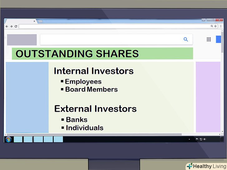 Знайдіть кількість розміщених акцій.після цього ви повинні дізнатися, яку кількість акцій розмістила компанія. Ця цифра відображає кількість акцій компанії, які знаходяться в руках акціонерів, включаючи внутрішніх (співробітники і члени директорів) і зовнішніх інвесторів (банки і фізичні особи).[3] цю інформацію можна знайти або на тому ж сайті, де ви дізналися вартість акцій, або в балансі компанії, під пунктом «основний капітал».- Згідно із законом, баланс всіх публічних компаній повинен знаходитися в загальному доступі.[4] просто пошукайте в будь-якому пошуковику баланс потрібної Вам компанії, і ви легко його знайдете.