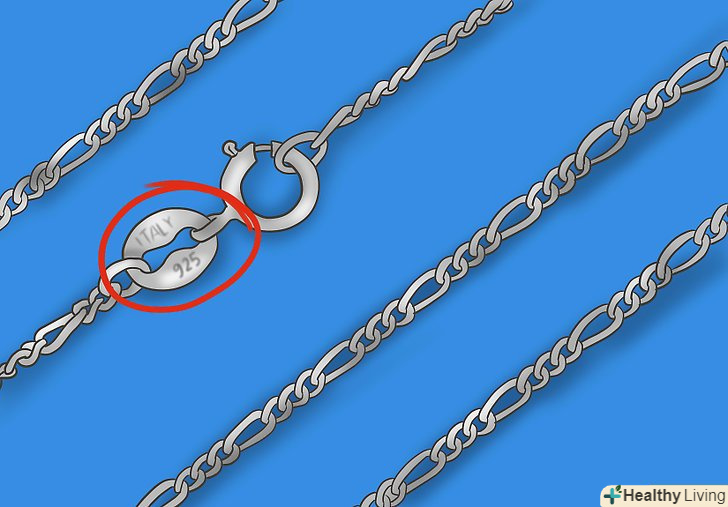 - Вироби зі справжнього срібла завжди мають тиснення, що підтверджує їх справжність. На прикрасах, столових приладах та інших виробах зі срібла шукайте тиснення "800", "925», «Ster», «Sterling»," Stg " або інші підтвердження справжності срібла.