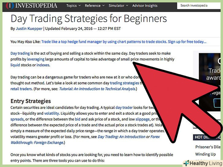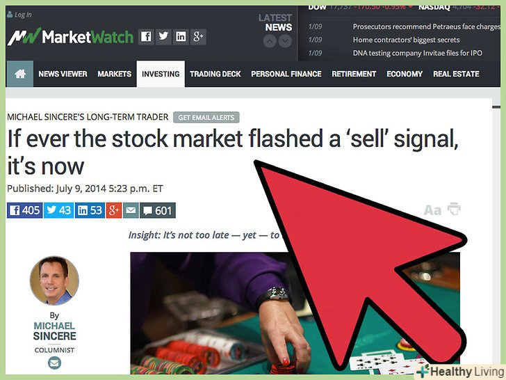 Досліджуйте тенденції ринку.існує безліч надійних джерел, де можна почерпнути інформацію про стан ринку. Вам, можливо, слід підписатися на журнал про біржові торги, читати такі видання онлайн або дивитися біржові новини на каналах на кшталт РБК.[1]- Також можете читати блоги успішних ринкових аналітиків.[2]